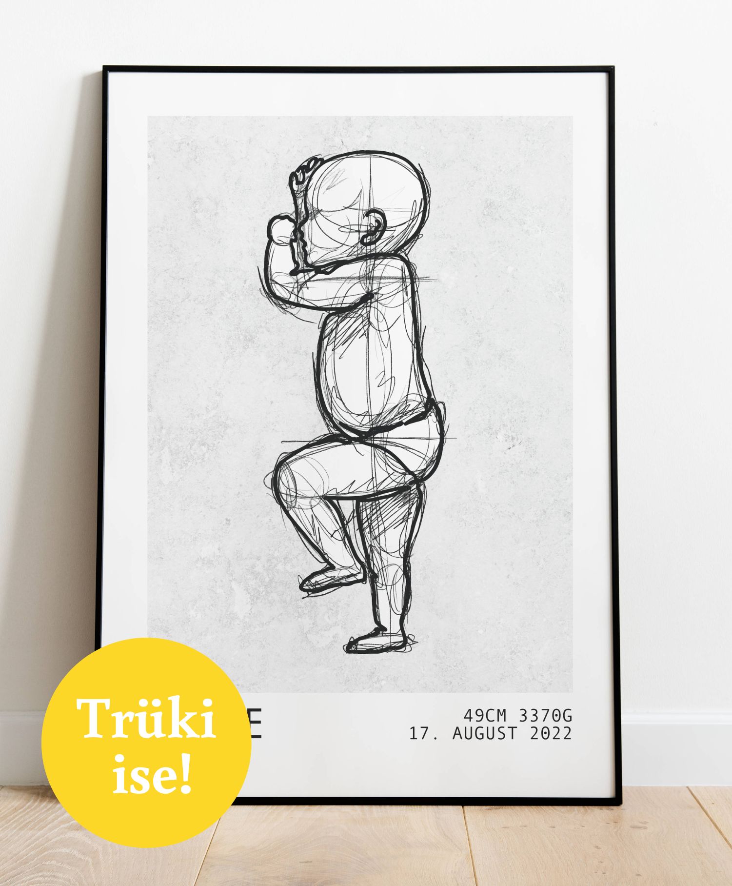 Beebiposter talletab tillukese beebi sünnimõõtmed kaunilt Sinu kodusisustusse. Trükisele kuvatakse beebi nimi koos ilunumbrite ja sünnikuupäevaga. Plakatil kujutatud beebi loome sinna täpselt Sinu lapse pikkuse järgi!
